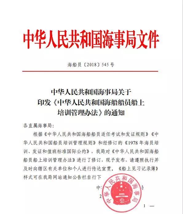 各直屬海事局: 根據(jù)《中華人民共和國海船船員適任考試和發(fā)證規(guī)則》《中華人民共和國船員培訓管理規(guī)則》和經(jīng)修訂的《1978 年海員培訓、發(fā)證和值班標準國際公約》,我局對《中華人民共和國海船船員船上培訓管理辦法》進行了修訂,現(xiàn)予發(fā)布,請遵照執(zhí)行并及時向轄區(qū)有關單位和個人進行傳達宣貫?!洞弦娏曈涗洸尽窐邮娇稍谖揖志W(wǎng)站通知公告欄自行下載。